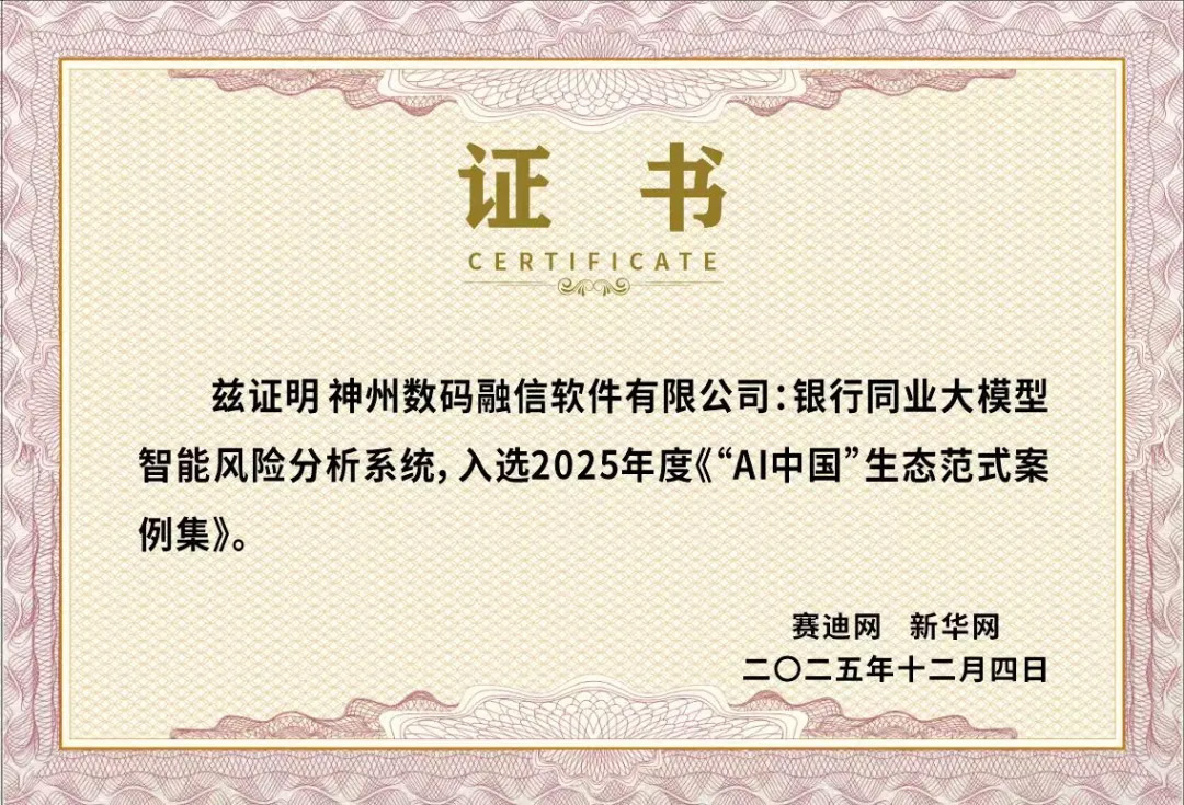 賽迪網在論壇上正式公布《“AI中國”生態范式集(2025)》和《“AI中國”生態圖譜(2025)》兩項重要成果。神州信息銀行同業大模型智能風險分析系統入選《“AI中國”生態范式集(2025)》。