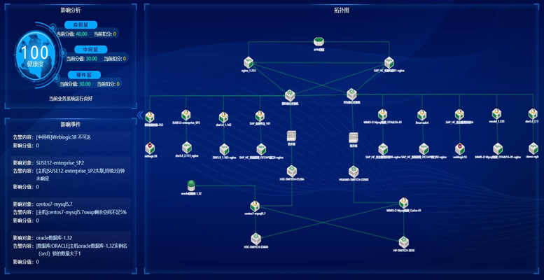 集中監控:從底層硬件到上層應用,監控數據需要集中采集和分析,并提供統一的告警通知和業務全景可視化;同時支持與虛擬化、云平臺等外部平臺對接起來。